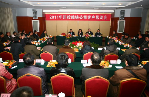 日前,川投峨鐵公司在峨眉山溫泉飯店召開了 “2011年客戶懇談會”, 來自省內(nèi)外的30余家企業(yè),50余位客戶和嘉賓,共同見證峨鐵2010年的發(fā)展,并誠摯交流,暢談合作,共謀發(fā)展、實(shí)現(xiàn)多贏。公司領(lǐng)導(dǎo)穆婷云、李宏、史江濤、余華偉及供應(yīng)公司、紀(jì)檢和工會相關(guān)人員參加了會議。會議由公司副總經(jīng)理史江濤主持。