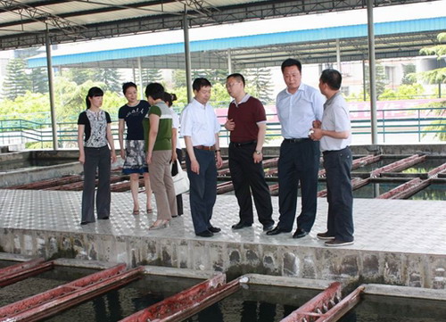 中午1時,李總一行首先來到射洪自來水公司,察看自來水生產(chǎn)工藝和水質(zhì)檢測中心的運行情況,并與在崗員工一一握手,親切交談。李總詳細(xì)詢問了射洪自來水公司為迎接2012年新水質(zhì)檢測標(biāo)準(zhǔn)而開展設(shè)備和技術(shù)人員的籌備情況,強調(diào)夏季是用水高峰期,要千方百計確保安全平穩(wěn)供水,并祝他們節(jié)日快樂、身體健康!隨后,李總一行又頂著35度高溫察看了取水口遷建工程的管道安裝和取水口施工現(xiàn)場,李總詳細(xì)詢問了工程進展情況,要求全力確保工程質(zhì)量、工期和安全,為川投水務(wù)和射洪縣經(jīng)濟的發(fā)展做出積極貢獻。