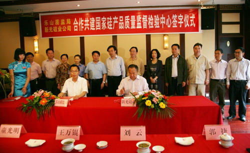 為加快推進國家硅產品質量監(jiān)督檢驗中心建設,打造全國一流硅產品公共檢驗檢測服務平臺、全國一流硅產品標準制訂(修訂)平臺,服務我市電子產品千億產業(yè)園區(qū)建設,促進硅產業(yè)及光伏產業(yè)健康、可持續(xù)發(fā)展。在樂山市委、市政府的關心支持下,新光硅業(yè)公司與樂山市質量技術監(jiān)督局達成共建“國家硅產品質量監(jiān)督檢驗中心”的合作協(xié)議,簽字儀式于6月1日在樂山舉行。