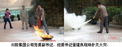 川投大廈共有16層地面辦公樓層,屬小高層建筑,是青羊區(qū)消防重點(diǎn)單位之一。為使川投大廈業(yè)主、客戶熟悉大廈消防通道和正確使用滅火器,佳友物業(yè)公司川投物業(yè)服務(wù)中心會(huì)同集團(tuán)公司后勤管理中心組織了業(yè)主、客戶共同參與的消防演練。本次消防演練,得到了集團(tuán)公司領(lǐng)導(dǎo)的大力支持,得到了集團(tuán)公司安委會(huì)、后勤中心和安辦等相關(guān)部門的支持和配合。演練總指揮由佳友物業(yè)公司安委會(huì)主任、副總經(jīng)理王賓同志擔(dān)任,集團(tuán)公司黨委副書記、紀(jì)委書記董建良、總經(jīng)理助理、辦公室主任楊強(qiáng)、各部門領(lǐng)導(dǎo)及管理人員、客戶單位代表、后勤管理中心及佳友物業(yè)公司本部、物業(yè)服務(wù)中心全體員工參加了演練。