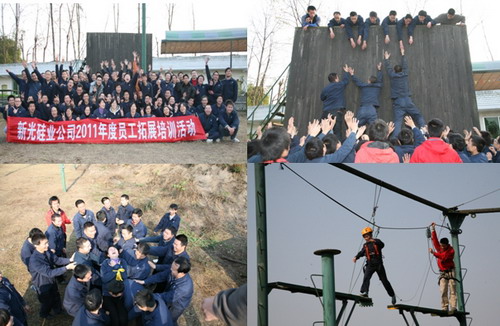 2011年12月12日至16日期間,新光硅業(yè)公司組織全員拓展培訓(xùn)。本次培訓(xùn)項(xiàng)目包括“團(tuán)隊(duì)建設(shè)”、“信任背摔”、“七星劍陣”、“高空斷橋”和“勇攀高峰”等多個(gè)項(xiàng)目。培訓(xùn)分五個(gè)批次,每批次80余人次,每批次培訓(xùn)時(shí)長(zhǎng)為一天。