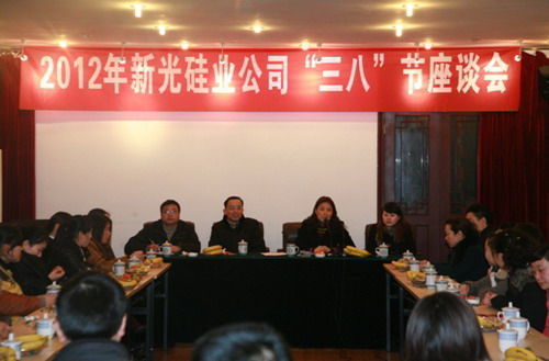 2012年3月8日,新光硅業(yè)公司慶祝“三八節(jié)”座談會在樂山金鷹山莊舉行,會議由公司紀(jì)委書記、工會主席余嘉樂同志主持。會上,余書記首先代表公司黨委和公司總經(jīng)理陳長江向長期堅持在崗位上積極工作、銳意進取,為公司發(fā)展做出貢獻,的女職工表示崇高的敬意與節(jié)日的祝福。隨后,董事會秘書、公司總經(jīng)濟師李紅同志宣讀了2011年度公司先進女工的表彰決定及表彰人員名單,并向受到表彰的女職工頒發(fā)榮譽證書。