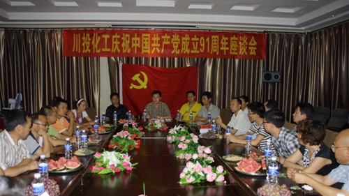 6月29日下午,川投化工在公司四樓會(huì)議室召開紀(jì)念中國共產(chǎn)黨建黨91周年座談會(huì)。會(huì)議由公司副總經(jīng)理張建強(qiáng)主持。公司總經(jīng)理助理董德明及全體黨員、入黨積極分子等共計(jì)70余人參加會(huì)議。