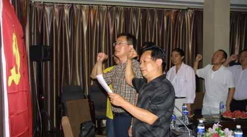 最后,由公司總經(jīng)理助理董德明同志領(lǐng)讀,全體黨員一起重溫了入黨誓詞。