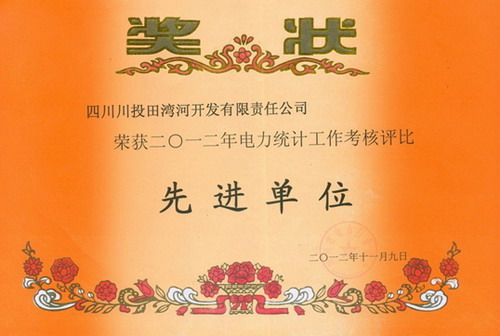 11月13日,四川省電力行業(yè)協(xié)會(huì)在年報(bào)會(huì)上表彰了2012年度統(tǒng)計(jì)工作先進(jìn)單位和優(yōu)秀個(gè)人,公司榮獲“2012年度統(tǒng)計(jì)工作先進(jìn)單位”榮譽(yù)稱(chēng)號(hào)、王麗榮榮獲“2012年度統(tǒng)計(jì)工作優(yōu)秀個(gè)人”榮譽(yù)稱(chēng)號(hào)。