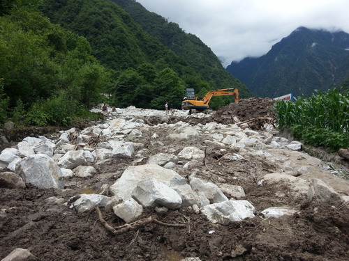 經(jīng)全面組織協(xié)調(diào),6月21日上午10時30分,陰山溝泥石流路段泥石流清通;下午16時10分,仁宗海電站10kv I段母線和界碑石變電站恢復(fù)供電。6月22日中午,唐家溝處公路段搶通,和平村村口等公路段邊坡垮塌處和唐家溝橋涵處已設(shè)置安全警示標示。按照“全啟動、先保通、再治理”的道路搶通原則,公司協(xié)調(diào)在電站現(xiàn)場的煌程公司和石棉興達公司、子豪公司等單位組織機具全部加入道路清理和搶通工作,以盡快恢復(fù)公路交通。