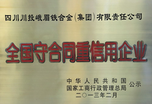 經(jīng)過工商行政管理部門層層審定,國家工商行政管理總局認(rèn)定川投峨鐵公司為 “全國守合同重信用企業(yè)”。并向公司授予了“全國守合同重信用企業(yè)”牌匾。