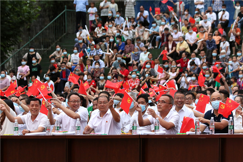 晚會(huì)在舞蹈《我和我的祖國》中拉開序幕,女聲獨(dú)唱《不忘初心》、紅歌聯(lián)唱《山丹丹花開紅艷艷》、群舞《萬疆》為黨的101歲生日祝福,現(xiàn)場觀看高難度的雜技《征途》更覺驚險(xiǎn)和精彩,節(jié)目川劇《變臉》《機(jī)器舞》《我是大民星》等互動(dòng)性節(jié)目讓臺下觀眾也有滿滿的參與感,二人相聲《贊歌獻(xiàn)給黨》、散打評書幽默風(fēng)趣,整臺晚會(huì)內(nèi)容豐富,贏得了觀眾的陣陣笑聲和掌聲。
