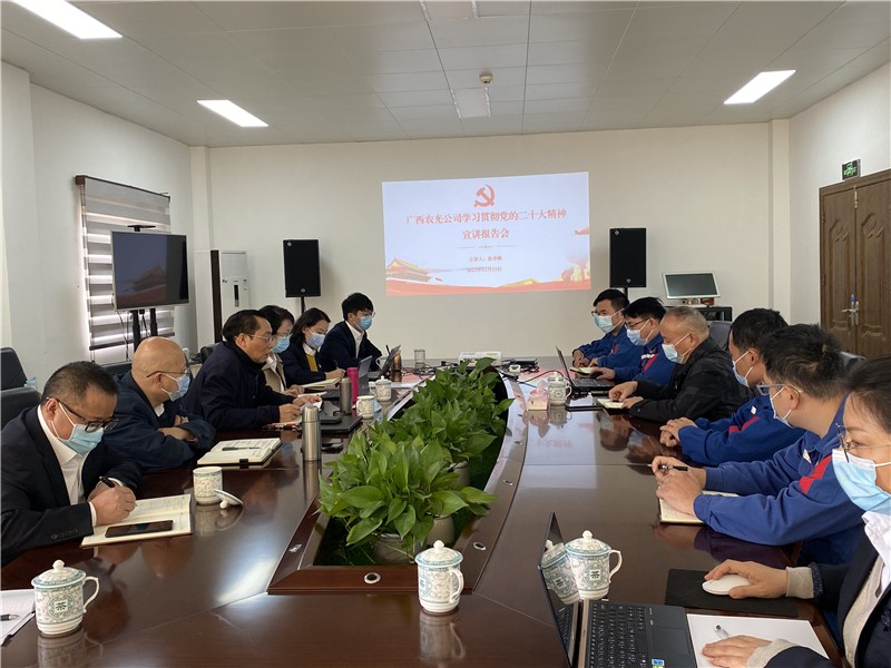 為進一步推動黨的二十大精神走深走實,12月14日上午,川投能源副總經理,攀水電黨總支書記、董事長,攀新能源董事長,廣西農光董事長徐孝剛一行赴廣西農光公司作黨的二十大精神專題宣講。攀新能源公司副總經理楊嵐主持會議。攀水電黨總支學習貫徹黨的二十大精神宣講組成員、廣西農光公司全體黨員、干部職工20人參加宣講會。