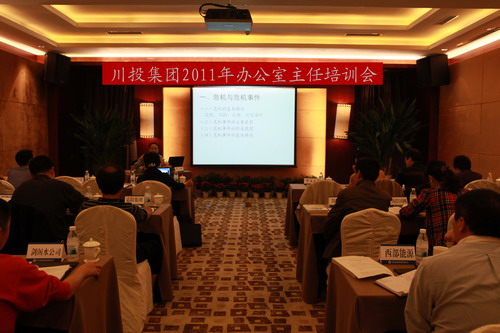 10月12日上午,川投集團(tuán)2011年辦公室主任培訓(xùn)會議在川投國際酒店召開。會議由集團(tuán)公司總經(jīng)理助理、辦公室主任楊強(qiáng)主持,全國知名新聞傳播學(xué)專家、四川省社科院趙志立教授特邀到會授課,集團(tuán)公司辦公室全體同志、各所屬企業(yè)辦公室主任共計(jì)50余人參加會議,集團(tuán)公司副總經(jīng)理李文志出席了會議并講話。