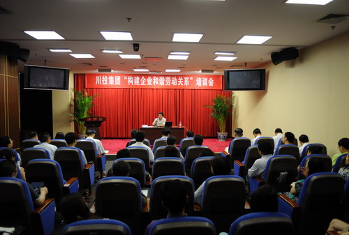為深入開展“實現(xiàn)偉大中國夢、建設(shè)美麗繁榮和諧四川”主題教育活動,持續(xù)推動企業(yè)改革發(fā)展,積極創(chuàng)建“建設(shè)發(fā)展快、質(zhì)量優(yōu)、和諧美的‘三型企業(yè)’”, 2013年6月14日上午,集團公司組織召開了“構(gòu)建企業(yè)和諧勞動關(guān)系”專題培訓(xùn)會,會議由集團公司總經(jīng)濟師薛東兵主持,總經(jīng)理助理兼人力資源部經(jīng)理石平出席會議,集團公司人力資源部、黨群部人員及集團公司所屬企業(yè)分管人事、工會的領(lǐng)導(dǎo),人力資源部、工會負(fù)責(zé)人及相關(guān)工作人員參會,會議特別邀請了四川省人力資源和社會保障廳勞動關(guān)系處陳泉處長為大家授課。