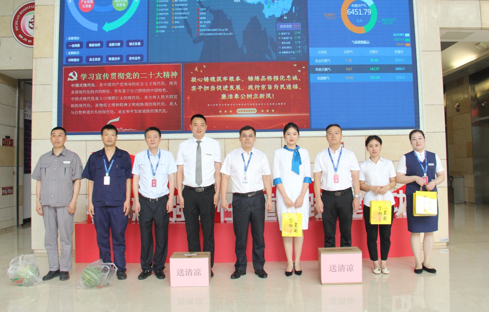 王懷林首先來(lái)到川投大廈一樓大廳門崗,對(duì)大廈基層一線物業(yè)服務(wù)人員進(jìn)行“送清涼”慰問,向堅(jiān)守在高溫下的一線員工表示親切的問候,并送上防暑降藥品及水果。他關(guān)切的提到,高溫酷暑天氣,基層一線職工一定要注重身體狀況和防暑,做好自身防暑工作。他要求,佳友物業(yè)要合理安排高溫崗位的戶外工作時(shí)間,務(wù)必要做好員工崗位防暑物資和必要的工作環(huán)境保障。