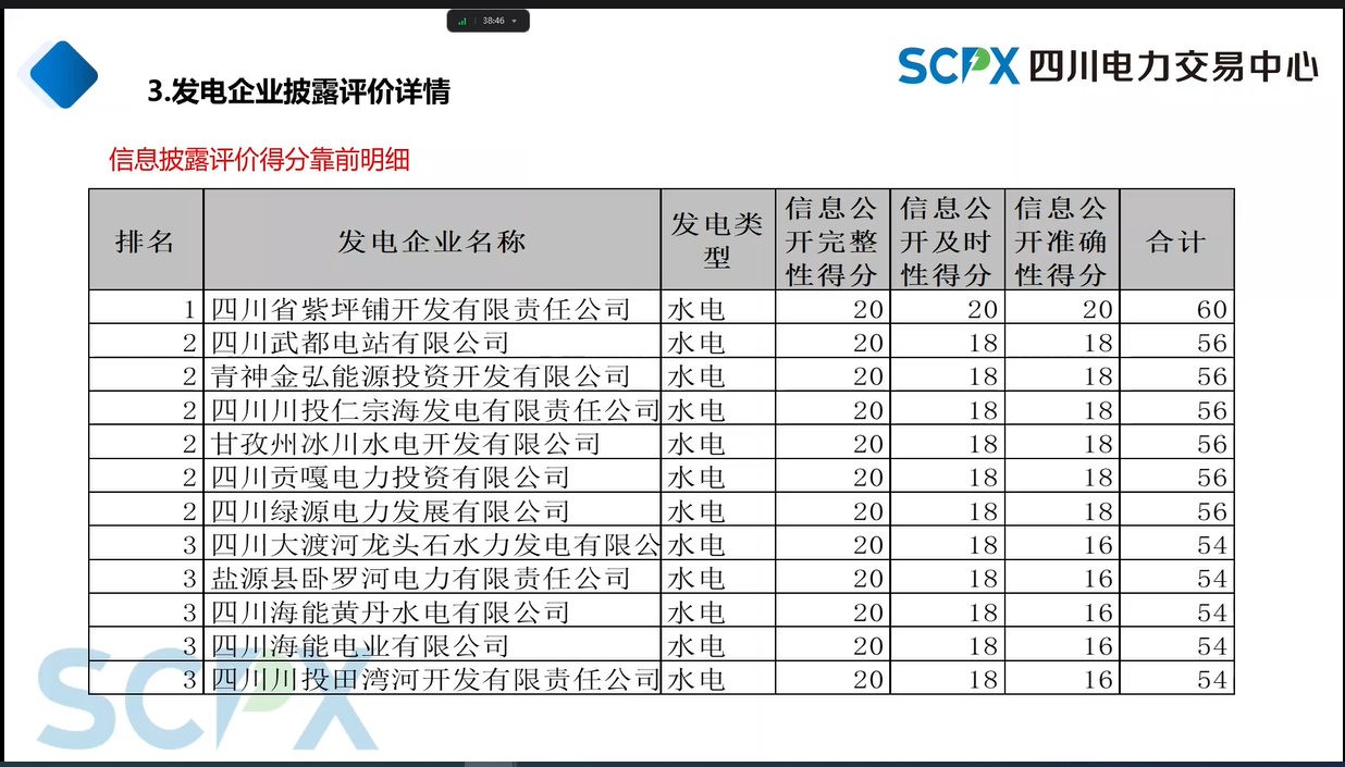 日前,四川省全網(wǎng)發(fā)電企業(yè)信息披露評價結(jié)果出爐,田灣河公司獲得佳績,所屬仁宗海公司和田灣河公司分別位列第二名、第三名。