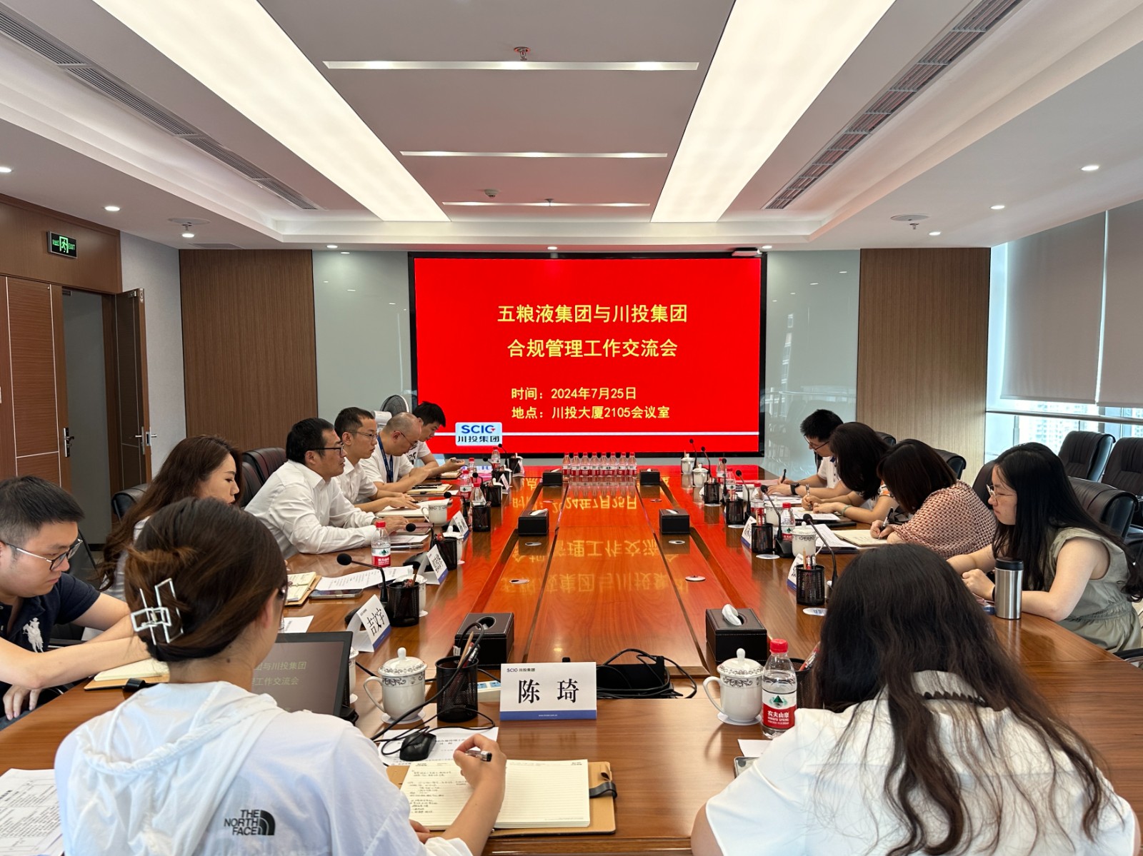7月25日下午,四川省宜賓五糧液集團有限公司(以下簡稱“五糧液集團”)戰(zhàn)略發(fā)展部負責人及相關人員到訪川投集團,雙方就企業(yè)合規(guī)管理工作展開交流。集團公司總法律顧問、法務風控部部長楊帆主持交流會議。