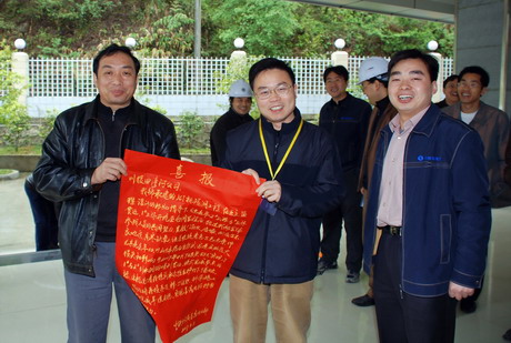 4月9日,在一陣鞭炮聲中,中鐵十六局金窩項(xiàng)目部經(jīng)理張?zhí)靷悓⒔鸶C水電站JC/I標(biāo)1#、2#支洞間主洞提前貫通的喜報(bào)送到公司總工程師唐劍虹,公司副總工程師、金窩項(xiàng)目管理部經(jīng)理何林手中。