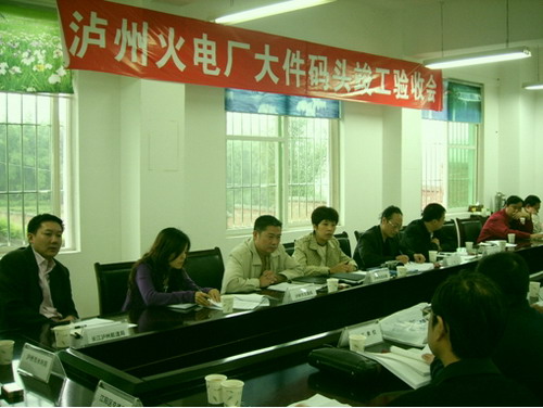 2007年10月12日,瀘州川南發(fā)電公司臨時(shí)施工大件碼頭工程竣工驗(yàn)收會在瀘州市江北鎮(zhèn)電廠施工生活區(qū)辦公樓舉行。省交通廳航務(wù)局、瀘州市發(fā)改委、市交通局、市水利局、市航務(wù)局、長江瀘州航道局、市質(zhì)檢站、瀘州市江陽區(qū)交通局、江陽區(qū)航務(wù)處部分負(fù)責(zé)人參與工程驗(yàn)收,大件碼頭設(shè)計(jì)、施工、監(jiān)理單位負(fù)責(zé)人和川南發(fā)電公司總經(jīng)理李勝章、常務(wù)副總經(jīng)理譚先明出席了竣工驗(yàn)收會。