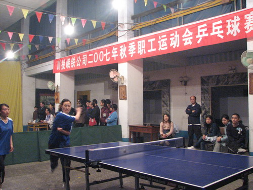 乒乓球項(xiàng)目中,11個代表隊(duì),52名隊(duì)員參加了混合團(tuán)體賽。比賽采用分組積分循環(huán)賽制,經(jīng)過29場次的激烈比賽,冠軍有配合默契、布陣合理的機(jī)關(guān)代表隊(duì)獲得,榮獲亞軍、季軍的分別是二分廠和離退一隊(duì)獲得。乒乓球運(yùn)動是一項(xiàng)深受廣大職工家屬喜愛的運(yùn)動,在比賽期間,每當(dāng)夜幕降臨的時候總有很多職工家屬趕往工人文化宮觀戰(zhàn),為運(yùn)動員鼓勁加油,為每一個精彩的好球喝彩。