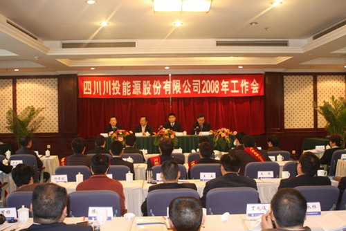 2008年4月2日,川投能源公司2008年工作會在成都龍泉天倫大酒店召開,公司全體員工、控股企業(yè)田灣河公司、嘉陽電力公司、天彭電力公司、長飛雙龍公司、交大光芒公司經(jīng)營班子成員、重要參股企業(yè)新光硅業(yè)公司、國電大渡河公司主要負責(zé)人、公司2007年度先進集體代表、先進個人共計60余人出席了會議。