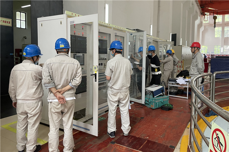 4月21日,發(fā)變組保護(hù)定值整定工作啟動(dòng)。工作組首先對(duì)發(fā)電機(jī)、變壓器、互感器等設(shè)備參數(shù)進(jìn)行收集、核對(duì);二是通過查閱《繼電保護(hù)和安全自動(dòng)裝置技術(shù)規(guī)程》《水力發(fā)電廠繼電保護(hù)設(shè)計(jì)導(dǎo)則》《國(guó)網(wǎng)四川省電力公司關(guān)于印發(fā)2022年度四川220kV及500kV電力系統(tǒng)繼電保護(hù)整定方案及調(diào)度運(yùn)行說明的通知》、咨詢廠家技術(shù)人員等方式,確定發(fā)變組保護(hù)配置;三是通過鉆研廠家技術(shù)說明書,掌握每個(gè)保護(hù)的邏輯框圖、參數(shù)配合、與相鄰保護(hù)的配合、計(jì)算公式的運(yùn)用、出口矩陣的選擇。一切準(zhǔn)備就緒,整定工作也來到最關(guān)鍵一步——計(jì)算各定值。由于首次自主計(jì)算,實(shí)際經(jīng)驗(yàn)不足,工作組以《DL/T 684-2012大型發(fā)電機(jī)變壓器繼電保護(hù)整定計(jì)算導(dǎo)則》為指導(dǎo),結(jié)合廠家技術(shù)說明書,反復(fù)推敲,逐項(xiàng)計(jì)算各保護(hù)定值。在計(jì)算機(jī)組失磁保護(hù)凸極功率時(shí),由于各設(shè)備裝置對(duì)凸極功率邏輯運(yùn)算的不同性,且國(guó)家規(guī)程規(guī)范無相關(guān)詳細(xì)介紹,工作組通過網(wǎng)絡(luò)檢索、業(yè)內(nèi)相似業(yè)務(wù)借鑒比較等方式,綜合分析、匯總審查,最終得出答案。