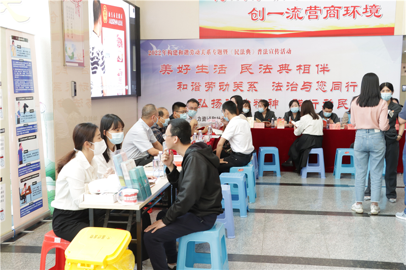 5月19日上午,由汕頭市人力資源和社會保障局、汕頭市政務(wù)服務(wù)數(shù)據(jù)管理局及汕頭市龍湖區(qū)人民法院聯(lián)合主辦,汕頭口腔醫(yī)院黨支部、汕頭市勞動人事爭議調(diào)解仲裁院及廣東國源嶺東律師事務(wù)所協(xié)辦的“2022年構(gòu)建和諧勞動關(guān)系專題暨《民法典》普法宣傳活動”在汕頭市政務(wù)服務(wù)中心舉辦,汕頭口腔醫(yī)院黨支部帶隊到場開展口腔義診活動。