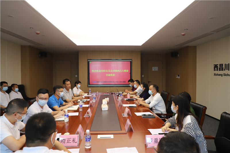 2022年5月31日,川投宏義公司總經(jīng)理姜驍一行到西昌大健康公司進行座談交流,公司黨總支書記龔堅,黨總支委員、副總經(jīng)理李剛、蒲軍,財務總監(jiān)朱彥及相關部門人員參加此次座談。