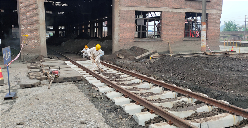 近日,川投峨鐵公司對節(jié)材二廠原料庫東門處的公路與專用鐵路3線交匯道口進(jìn)行了整治,通過斷道施工,更換新軌排,重新布設(shè)軌道板,消除車輛通行安全隱患。