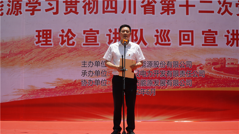 宣講在群山環(huán)繞、瓜果飄香、彩旗飄飄的電廠職工運動場拉開帷幕。在開場致辭中,冉蘭平代表川投能源黨委向默默堅守在甘洛縣玉田電廠的每一位干部職工表示感謝,也向電廠無私奉獻(xiàn)、艱苦奮斗,“舍小家為大家”的精神表示致敬。他指出,本次宣講旨在向電廠全體干部職工宣講習(xí)近平總書記來川視察重要講話精神和中國共產(chǎn)黨四川省第十二次黨代會精神,切實推動省十二次黨代會精神在基層落地生根。他要求,要學(xué)習(xí)領(lǐng)會好、宣傳宣講好、貫徹落實好省第十二次黨代會精神,將其作為當(dāng)前和今后一段時期重要政治任務(wù),進(jìn)一步增強“四個意識”、堅定“四個自信”、做到“兩個維護”,為打造“國內(nèi)一流清潔能源上市公司”,推動治蜀興川再上新臺階不懈奮斗,以積極飽滿的實際行動和優(yōu)異成績迎接黨的二十大勝利召開。