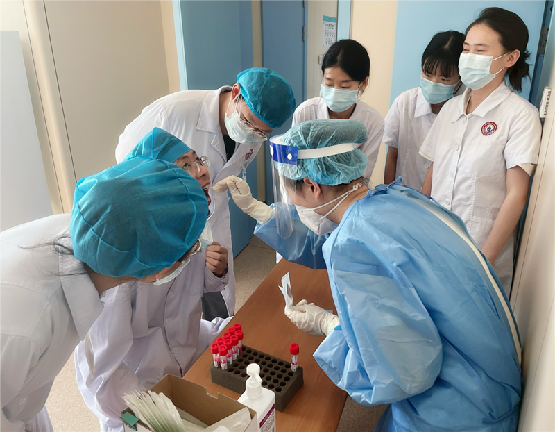 為進(jìn)一步提升四川口腔醫(yī)院醫(yī)務(wù)人員核酸檢測(cè)采樣能力,6月29日下午,按照成都市衛(wèi)健委疫情防控工作部署,四川口腔醫(yī)院在14樓專家會(huì)議室開(kāi)展了核酸采樣及院感防控知識(shí)培訓(xùn)。醫(yī)院檢驗(yàn)科李靜、院感科羅啟莉、2022屆進(jìn)修生、實(shí)習(xí)生參加培訓(xùn)。