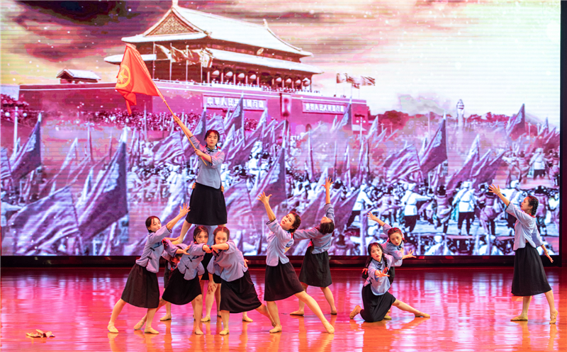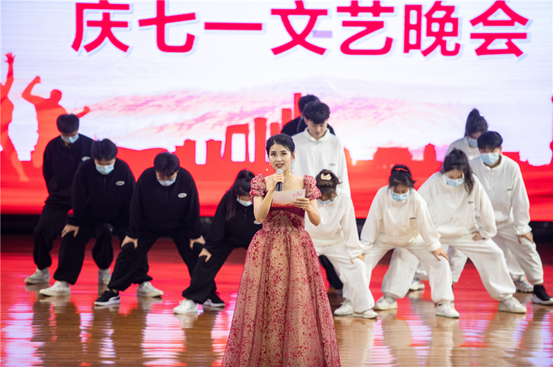晚會分為青春心向黨、學院展風采、禮贊新時代三個部分,包含歌舞、合唱、朗誦等總共11個節(jié)目。在炫目的燈光中,節(jié)奏動感的音樂響起,老師和學生踩著強有力的節(jié)拍跳起了炫酷的舞蹈,展現(xiàn)出學院師生“新時代、新文藝、新青年”朝氣蓬勃的風采。