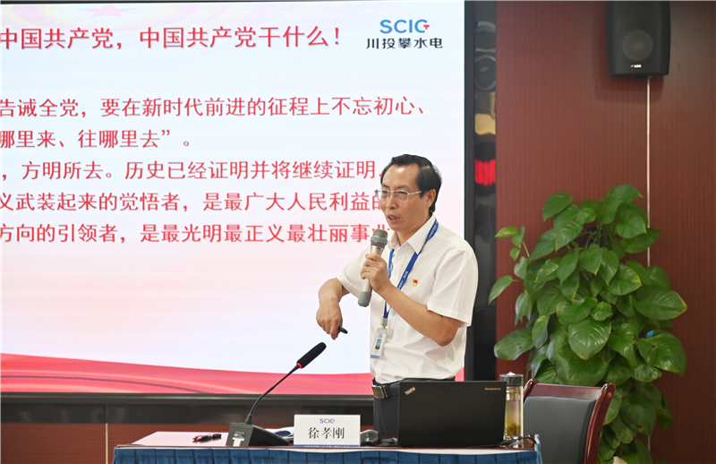 按照川投集團黨委和川投能源黨委總體部署,為深入學習貫徹習近平總書記來川視察重要指示精神和四川省第十二次黨代會精神,傳達學習川投集團和川投能源慶?!捌咭弧北碚么髸?,7月1日下午,攀水電公司組織召開慶祝建黨101周年先進表彰大會暨“書記講堂”,由川投能源副總經(jīng)理、攀水電公司黨總支書記、董事長、攀新能源公司董事長徐孝剛講授專題黨課。攀水電公司全體黨員、統(tǒng)戰(zhàn)對象,參建單位負責人、聯(lián)建支部支委及“兩優(yōu)一先”表彰對象共計45人參加會議,會議由黨總支委員、董事會秘書、工會主席鄧勇主持。