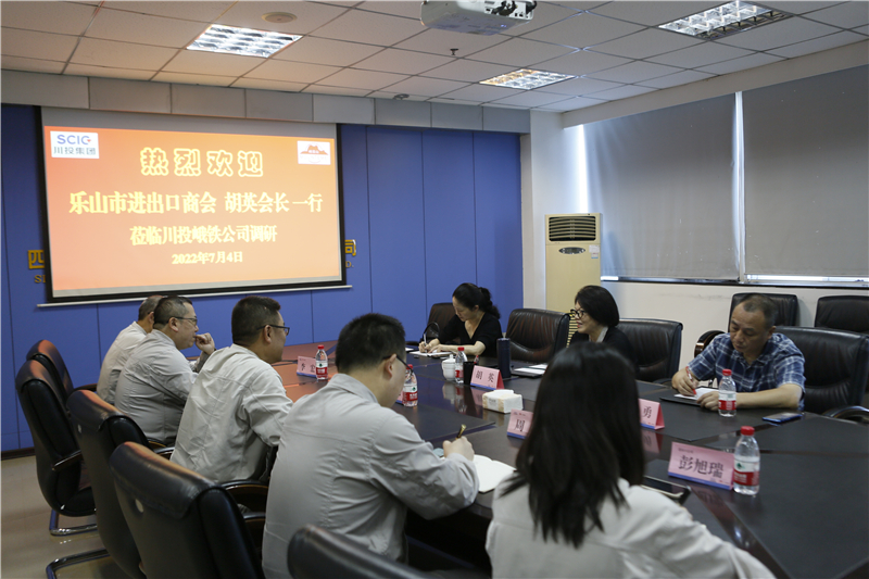 7月4日,樂山市進(jìn)出口商會會長胡英、監(jiān)事長黃勇等一行3人到訪川投峨鐵公司。川投峨鐵公司黨委副書記、總經(jīng)理陳新龍,常務(wù)副總經(jīng)理李宏以及營銷總監(jiān)周全接待了來訪客人一行。
