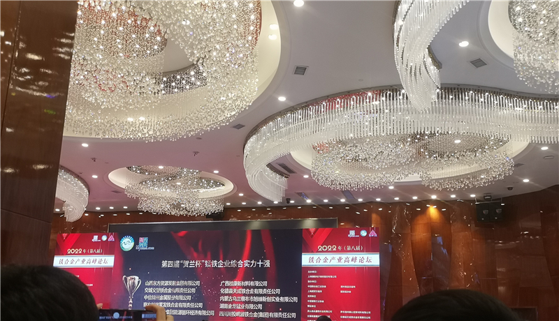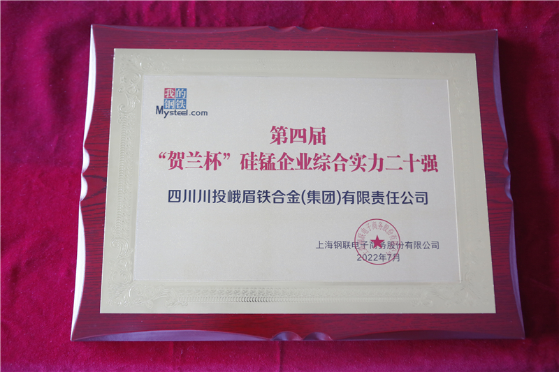 7月13日至15日,在上海鋼聯(lián)電子商務(wù)股份有限公司主辦的2022年(第八屆)鐵合金產(chǎn)業(yè)高峰論壇上,川投峨鐵公司獲得第四屆“賀蘭杯”鐵合金企業(yè)綜合實(shí)力評(píng)比“硅錳企業(yè)綜合實(shí)力二十強(qiáng)”和“錳鐵企業(yè)綜合實(shí)力十強(qiáng)”兩項(xiàng)殊榮。