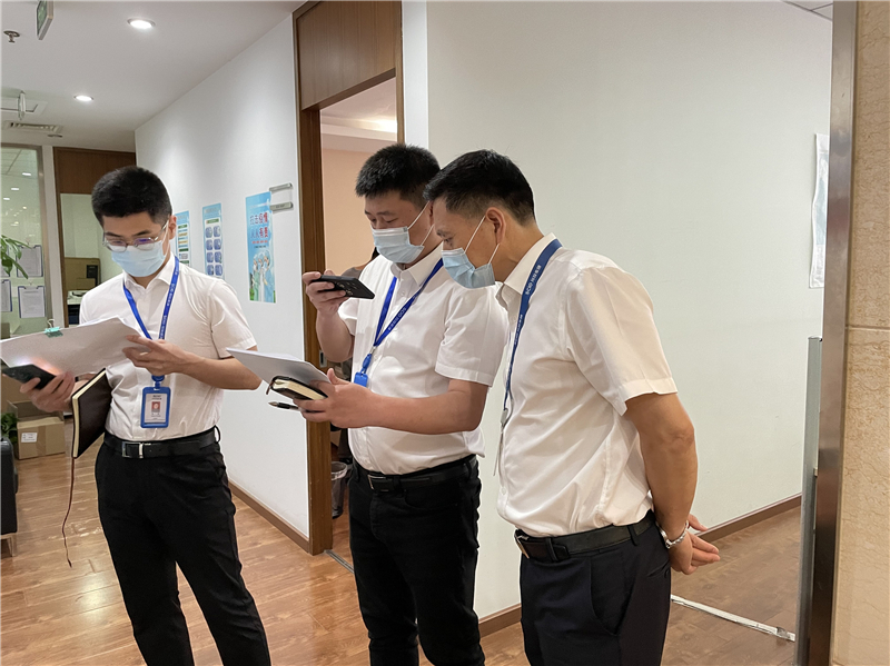 冉蘭平一行首先對(duì)川投電力的辦公區(qū)域、公共區(qū)域等關(guān)鍵點(diǎn)位進(jìn)行了檢查,并詳細(xì)查看了防疫物資儲(chǔ)備情況、疫情防控工作臺(tái)賬、人員健康登記臺(tái)賬,詢(xún)問(wèn)了個(gè)別“黃碼”人員和“軌跡重疊”人員的核酸檢測(cè)情況和居家辦公情況等。隨后,冉蘭平一行又采取“掃樓”方式,對(duì)川投大廈6樓、9樓各辦公室的疫情防控工作落實(shí)情況進(jìn)行逐個(gè)督查檢查。
