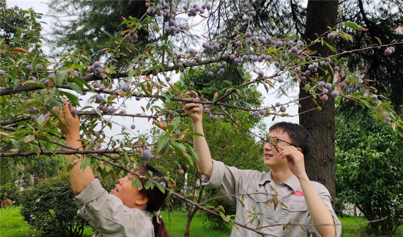 今年6月以來,公司100多棵“五月脆” “半邊紅”等早熟和晚熟李子品種中有60多棵相繼掛果。7月中旬,大面積脆紅李相繼成熟。一串串青綠伴紫紅、大紅的成熟李子搖曳在枝頭,果園中彌漫著濃郁的果香,讓人垂涎欲滴。隨即,公司適時啟動了“峨鐵有李”采摘活動,將李子分批擺上了餐桌,為職工們奉上了可口的果蔬,凝心聚力,共享勞動的果實和喜悅。