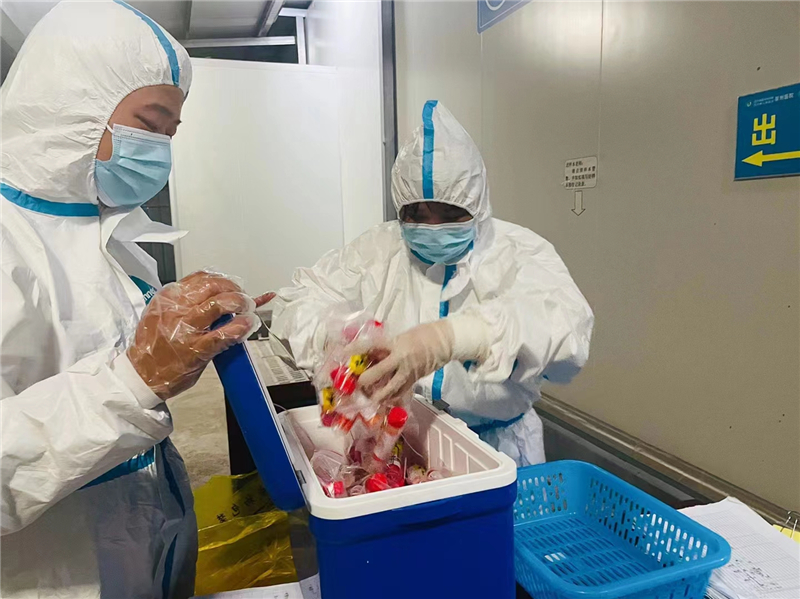 7月17日,1小時內(nèi)迅速集結由25名醫(yī)護人員組成的黨員先鋒隊,緊急支援社區(qū)核酸采樣,構筑抗疫“紅色防線”。截至18日凌晨1點,分別在中壩社區(qū)、米蘭香洲、金沙十年等核酸采集點,累計完成核酸采樣6000余人次。為確保所有樣本限時準確送達,轉運隊員不斷優(yōu)化流程,盡力壓擠非任務時間;盡量不喝水,減免脫換防護服時間,仔細做好清點、消殺、裝車、運送、交接核對等具體工作。截至18日凌晨5點,5名轉運人員共完成了3000余人的樣本轉運工作。