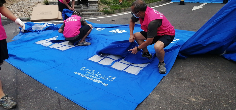 在當(dāng)?shù)匾咔榉揽刂笓]部的帶領(lǐng)下,王成勇、祝長青,身披“志愿紅”,深入封控區(qū)域,從晨光熹微到燈火闌珊,一整天都是后背全濕,每一天都是腰酸背痛。但他們明白,“哪里需要就沖向哪里”。二人先后9次進入高風(fēng)險區(qū)搭建應(yīng)急帳篷,為的是這一頂頂帳篷能夠為來自四面八方、各行各業(yè)的志愿者們遮風(fēng)擋雨,每天一趟趟一袋袋的蔬菜、肉、米、油,讓當(dāng)?shù)鼐用衽c游客每天都能夠安心避疫。