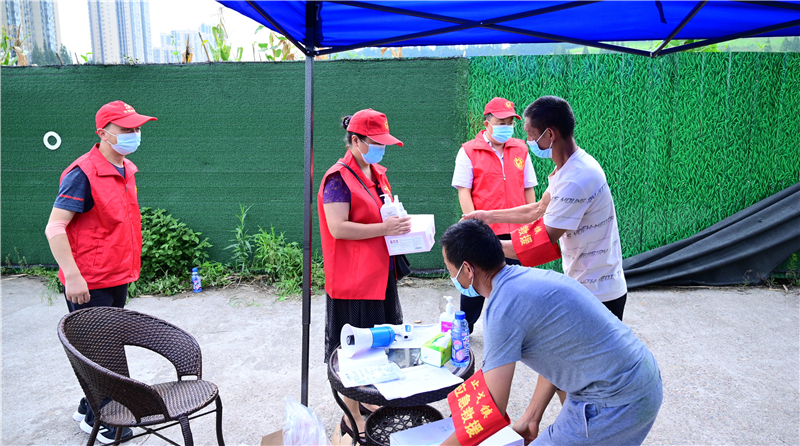 “剛”是沖鋒在前,堅守崗位的責(zé)任與擔(dān)當(dāng)。“請大家戴好口罩、保持一米距離,沒有健康碼的群眾提前準備好身份證……”在槽漁灘公司所在八角廟社區(qū)各核酸采樣點現(xiàn)場,活躍著“巾幗紅們”忙碌的身影,她們分工協(xié)作、密切配合,引導(dǎo)排隊采樣。同時,沿街宣傳疫情防控知識,對扎堆聊天、不戴口罩的群眾進行勸阻。