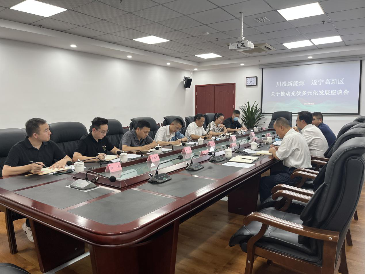 在遂寧市,川投新能源公司與高新技術(shù)產(chǎn)業(yè)園管委會開展座談,雙方就整區(qū)分布式光伏項目規(guī)劃、選點等工作展開深入交流。