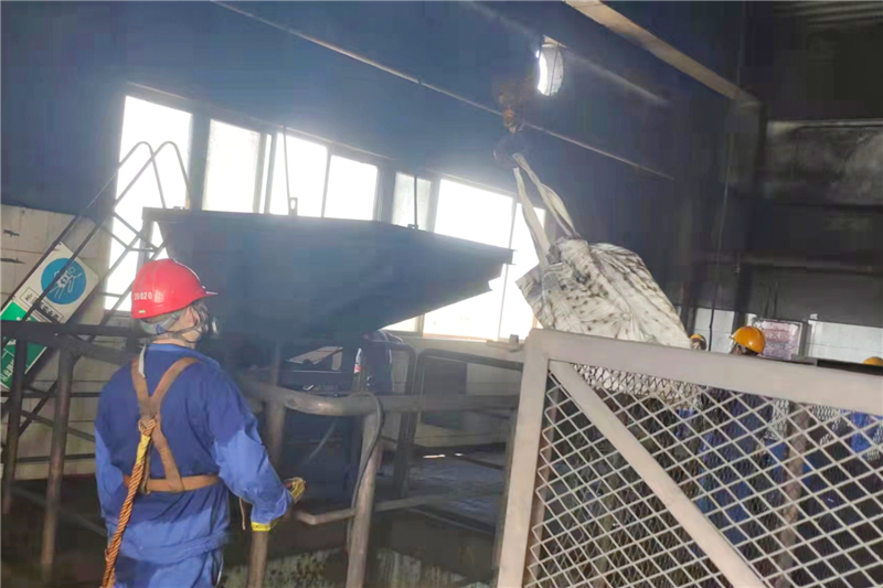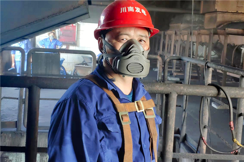 8月21日,星期天,發(fā)電部鍋爐專工何世永又主動放棄了休息,早早地來到了生產(chǎn)現(xiàn)場。只見他頭戴安全帽,身著工作服,腰系安全帶,面戴防塵面具,穿梭在輸煤煤倉間,仔細(xì)查看鋼球磨損情況,制定不同尺寸鋼球添加比例,然后將幾噸的成袋鋼球通過電動葫蘆加注到一個(gè)個(gè)原煤倉中。40多攝氏度的氣溫讓身披“鎧甲”的他大汗淋漓,不一會兒,汗水就浸透了他的衣衫。