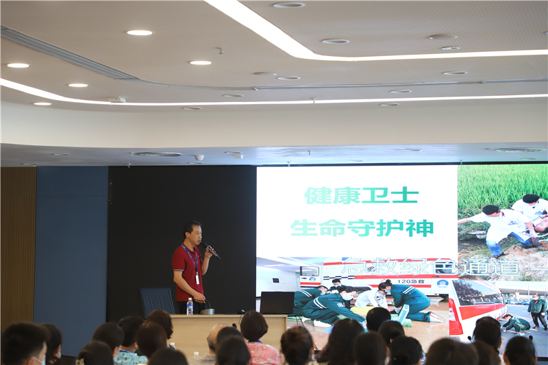 隨后,醫(yī)務(wù)部主任唐運濤就“急救綠色通道運行機制”等內(nèi)容展開培訓(xùn)。他從急救綠色通道的定義、實施流程、救治原則、行為規(guī)范等方面進行了深入淺出的講解,并對醫(yī)院急救隊伍建設(shè)、制度建設(shè)提出了建議。