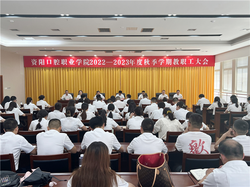 為做好開學(xué)前的各項準備,確保新學(xué)期工作平穩(wěn)有序開展,8月24日上午,資陽口腔職業(yè)學(xué)院召開2022——2023年度秋季學(xué)期教職工大會。學(xué)院領(lǐng)導(dǎo)班子成員出席,全體教職員工參加會議。