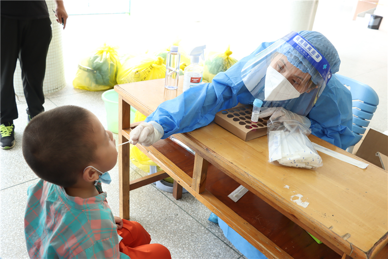核酸檢測(cè)現(xiàn)場(chǎng),醫(yī)務(wù)人員身著防護(hù)服,佩戴口罩、護(hù)目鏡和醫(yī)用手套,嚴(yán)格按照檢測(cè)規(guī)范流程為學(xué)生們進(jìn)行核酸采樣工作,醫(yī)務(wù)人員操作熟練、動(dòng)作迅速,師生及教職員工積極配合醫(yī)務(wù)人員,現(xiàn)場(chǎng)秩序井然。在采樣工作完成后,醫(yī)務(wù)人員不忘進(jìn)行現(xiàn)場(chǎng)消毒消殺及醫(yī)療廢棄物處置,整個(gè)過程有條不紊,安全規(guī)范開展。