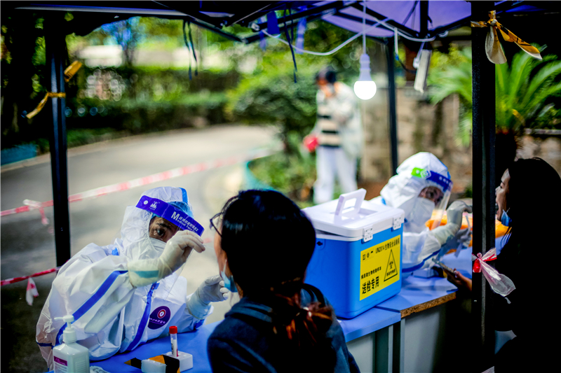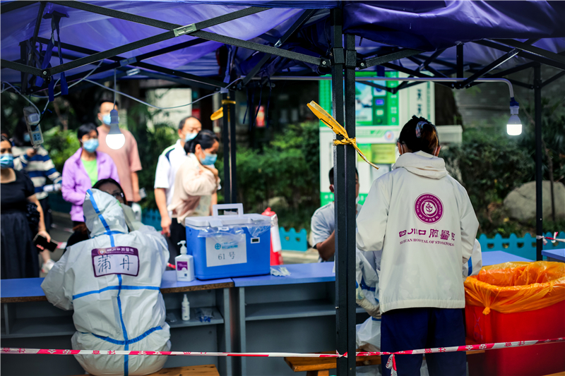 8月29日,“青羊區(qū)大規(guī)模核酸檢測(cè)作戰(zhàn)任務(wù)”的緊急通知?jiǎng)倓傁逻_(dá),2名正打算休假的黨員放棄休假、主動(dòng)請(qǐng)戰(zhàn),全副武裝準(zhǔn)時(shí)抵達(dá)指定地點(diǎn)開(kāi)展核酸檢測(cè)。從下午3點(diǎn)到晚上10點(diǎn),他們連續(xù)奮戰(zhàn)7個(gè)多小時(shí)未休息,為超過(guò)4600名小區(qū)居民完成核酸采樣。截至9月3日,該支部已出動(dòng)醫(yī)護(hù)人員20余人次,圓滿完成上級(jí)安排的各次核酸采樣任務(wù)。