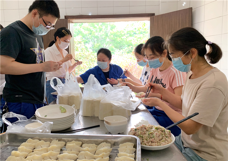 早上七點半,志愿者們已經(jīng)在職工食堂備餐,他們整理新鮮的蔬菜、清洗蔬菜、給南瓜削皮,有廚藝負(fù)責(zé)切菜,大家合理分工、高效協(xié)作,個個充滿干勁,每天早上7:30開始直到10:00左右。9月12日,志愿者們還一起為公司全體職工包了餃子,許多職工群眾也自發(fā)的來到職工食堂幫忙。