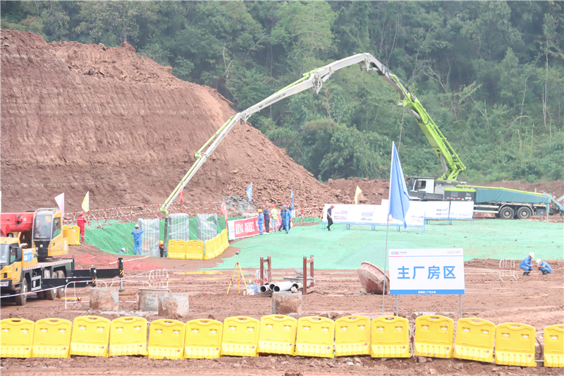 9月16日上午11點(diǎn)16分,伴隨著熱烈的鞭炮聲、鼓掌聲和工程車輛的鳴笛聲,資陽燃?xì)怆娬拘陆üこ添?xiàng)目主廠房第一罐混凝土澆筑儀式隆重舉行。隨著EPC總承包項(xiàng)目部負(fù)責(zé)人宣布澆筑開始,混凝土攪拌車內(nèi)的混凝土通過泵車輸送管緩緩注入主廠房基礎(chǔ)鋼筋模具內(nèi),標(biāo)志著項(xiàng)目建設(shè)正式啟動。