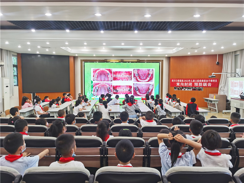 為加強(qiáng)兒童口腔衛(wèi)生健康教育,減輕齲齒對(duì)兒童口腔健康的危害,改善兒童口腔衛(wèi)生狀況,9月20日,正值“全國(guó)愛(ài)牙日”之際,四川口腔醫(yī)院前往成都市文翁實(shí)驗(yàn)小學(xué),開(kāi)展主題為“護(hù)牙健齒少年強(qiáng),健康中國(guó)民族興”的口腔健康宣教活動(dòng)。活動(dòng)現(xiàn)場(chǎng),四川口腔醫(yī)院醫(yī)生通過(guò)講座、播放科普視頻、發(fā)放科普資料等多種途徑與載體,以線上線下相結(jié)合的方式,提高學(xué)生、家長(zhǎng)、教師對(duì)于口腔健康的關(guān)注度。此次活動(dòng)的開(kāi)展,標(biāo)志著四川口腔醫(yī)院“2022年兒童口腔疾病綜合干預(yù)項(xiàng)目”正式拉開(kāi)帷幕。