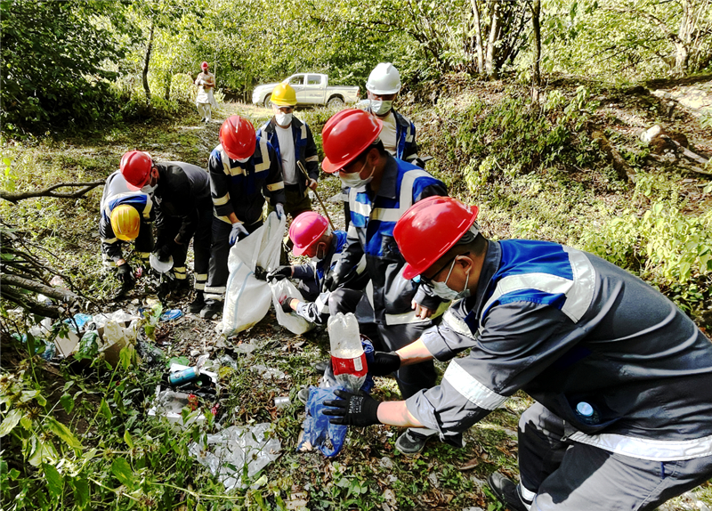 此次垃圾清理路線覆蓋薩河閘首處至營(yíng)地生活區(qū)沿線,該沿線依山傍水、風(fēng)景優(yōu)美,上有卡杜里覆盆子瀑布,下有避暑小樹林,是格魯吉亞東部地區(qū)的“網(wǎng)紅打卡地”、避暑勝地。值此“世界清潔日”,為保護(hù)沿途自然環(huán)境,中格人員集體驅(qū)車前往薩河閘首,手持編織袋,沿河收集垃圾。在大家的共同努力下,清理出塑料瓶上千個(gè)、廢紙雜物等物品若干,他們將搜集的垃圾運(yùn)回電站進(jìn)行統(tǒng)一處理。