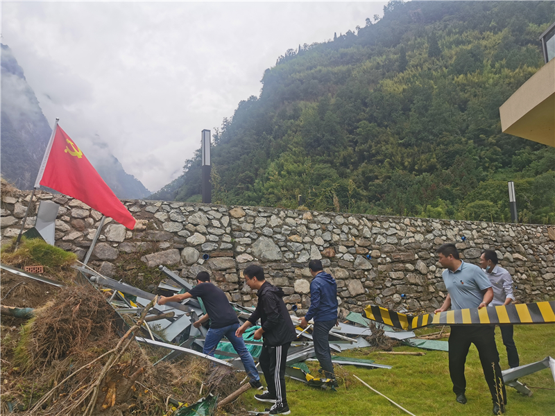 旅游公司黨支部委員、總經(jīng)理黃焓君在震后第一時間做出部署,他說:“地震發(fā)生后的72小時是黃金救援時間,我們要承擔起國企的社會責任與擔當,成立抗震救災(zāi)先鋒隊,自救的同時還要協(xié)助當?shù)卣_展好救援工作”。公司黨員干部吹響“沖鋒號”,立即與四川省第一建筑工程有限公司組成13人的搜救小分隊,在草科鄉(xiāng)工作人員的帶領(lǐng)下,經(jīng)5小時搜救,救出1名被困人員。同時組織6名搶險人員、調(diào)集2臺挖機配合地方政府搶修草界路。