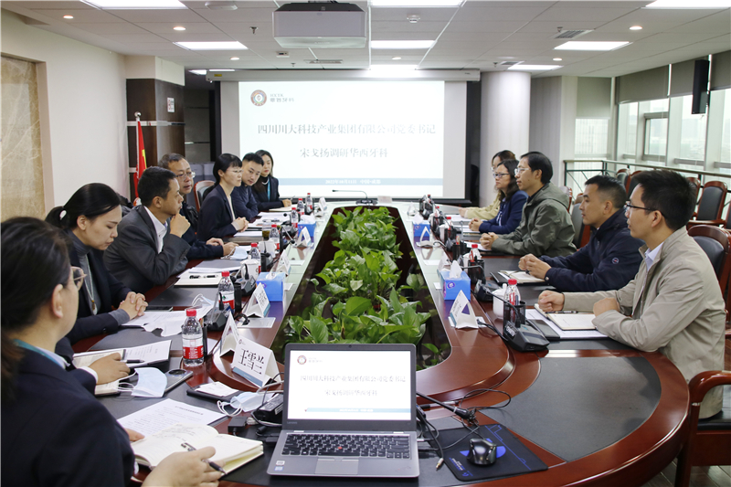 10月11日上午,四川川大科技產(chǎn)業(yè)集團(tuán)有限公司黨委書記宋戈揚(yáng)一行赴華西牙科、四川口腔醫(yī)院調(diào)研指導(dǎo)工作。華西牙科黨委書記、董事長(zhǎng)劉凌云,黨委副書記、職工董事、工會(huì)主席金晶,黨委委員、副總經(jīng)理劉云戈陪同調(diào)研。