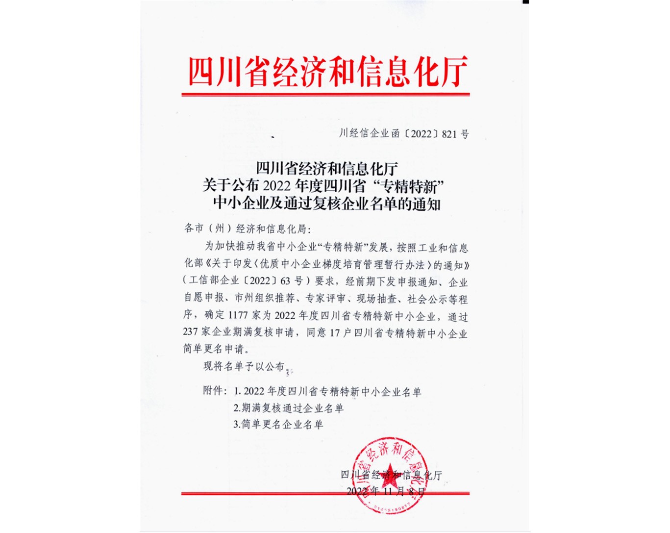 近日,四川省經(jīng)濟(jì)和信息化廳公布了2022年四川省專精特新中小企業(yè)名單,川投信產(chǎn)所屬四川川投云鏈科技有限公司憑借在金融科技領(lǐng)域的突出表現(xiàn)成功獲評(píng)四川省“專精特新”中小企業(yè)。